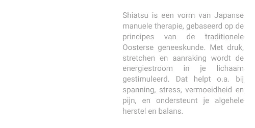 Shiatsu brengt je van spanning naar diepgaande rust en kan verlichting bieden bij stress, pijn en energieblokkades.